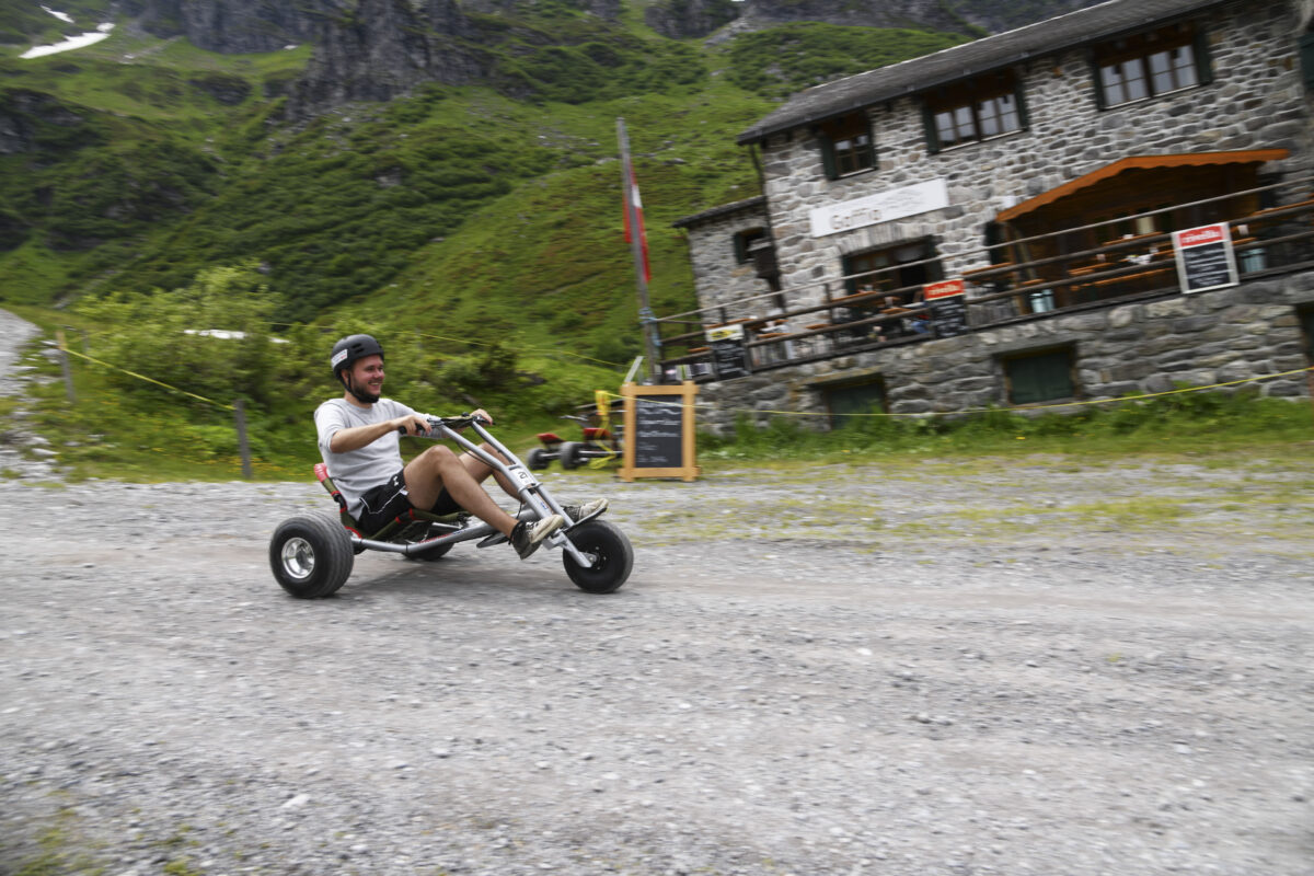 Fahrtwind in den Haaren und dosiertes Adrenalin in den Adern – auf den geländegängigen Mountaincarts am Pizol geht es gemütlich oder auch rasant auf drei Rädern bergab.