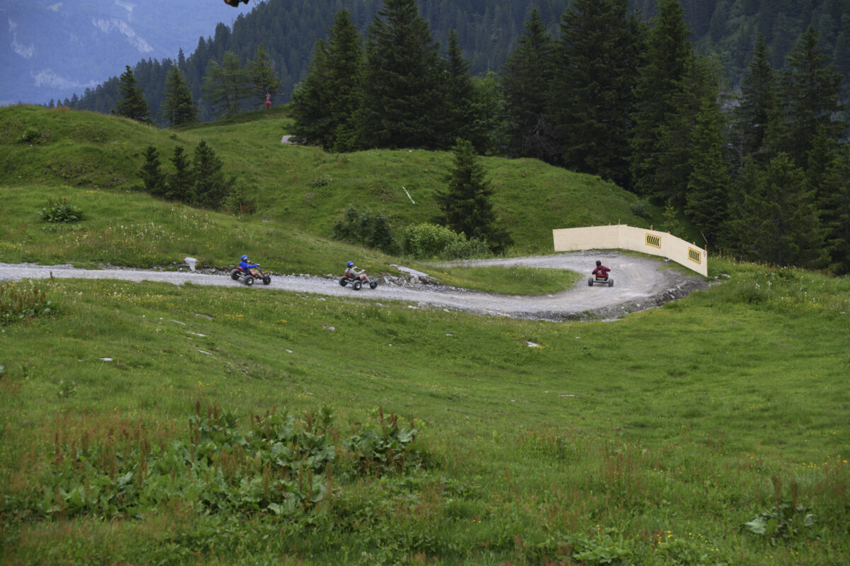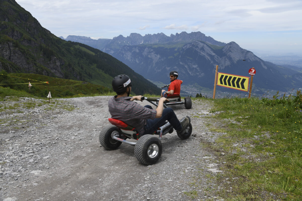 Auf der rund 2’200m langen Strecke zwischen den Stationen Gaffia und Furt kann die aufregende und kurvenreiche Naturstrasse befahren werden. Dank des tiefen Schwerpunkts und einem breiten Radstand verfügen die Mountaincarts über eine hohe Stabilität. Ohne Motor und aus reiner Schwerkraft angetrieben, kann selbst bestimmt werden in welchem Tempo die Fahrt aufgenommen werden soll.