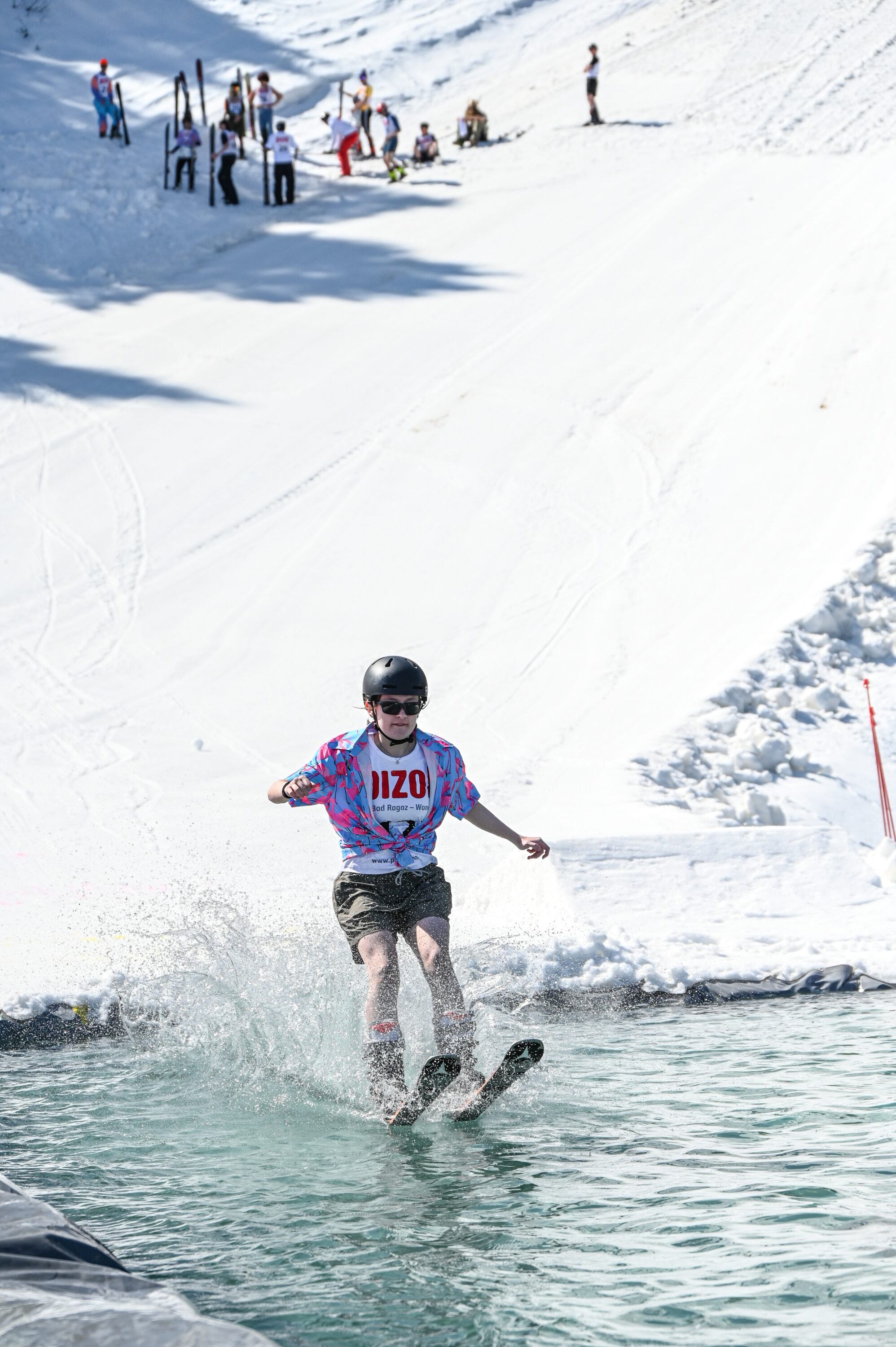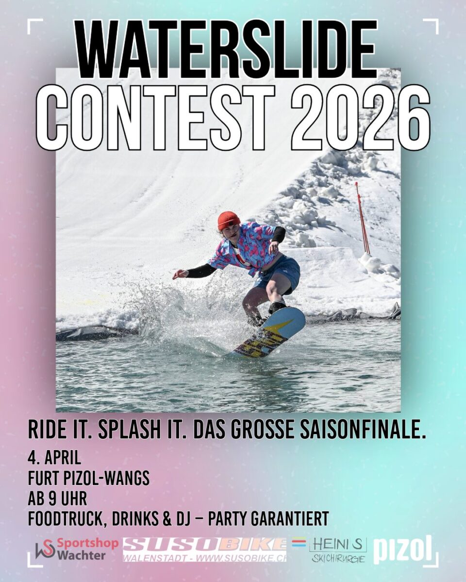 Erlebe einen megalustigen Saisonabschluss mit Badeplausch am Pizol auf der " Furt". Dabei steht der Spass ganz klar im Vordergrund und nicht der Wettkampf. Die Skifahrer und Snowboarder starten dabei zu Beginn mit einem Anlauf von ca. 50m. Nach jeder Runde wird dieser verkürzt, so dass am Schluss nur noch eine Person trocken bleibt.